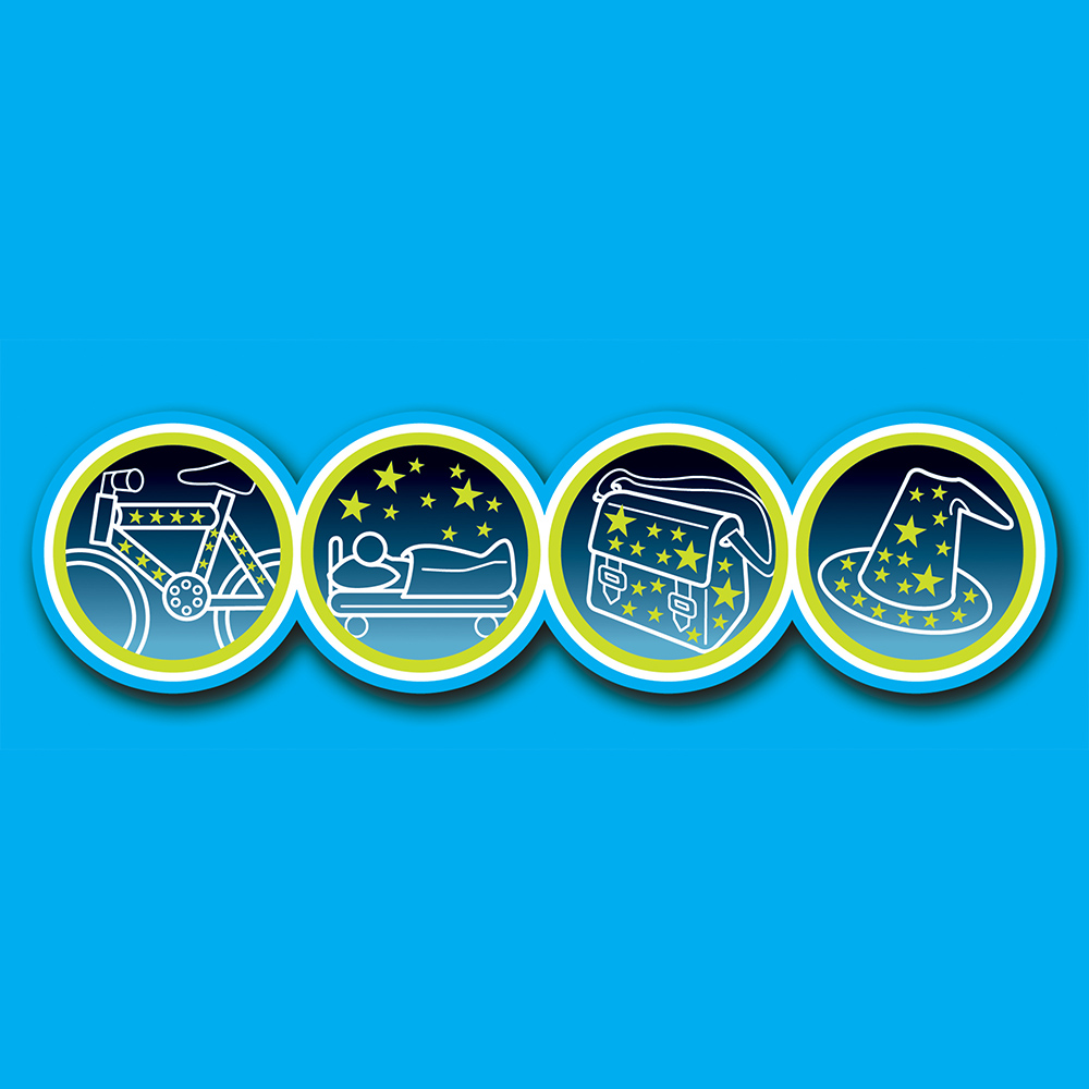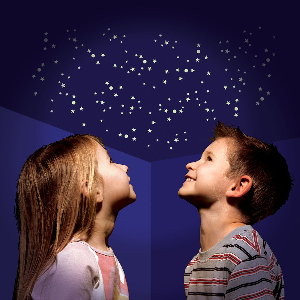 Αφήστε τη φαντασία σας ελεύθερη και δημιουργήστε έναν μαγευτικό, λαμπερό νυχτερινό ουρανό στα τετράδιά σας, στις τσάντες σας ή όπου αλλού θέλετε! Θα τον δείτε να λάμπει μόλις σβήσει το φως!