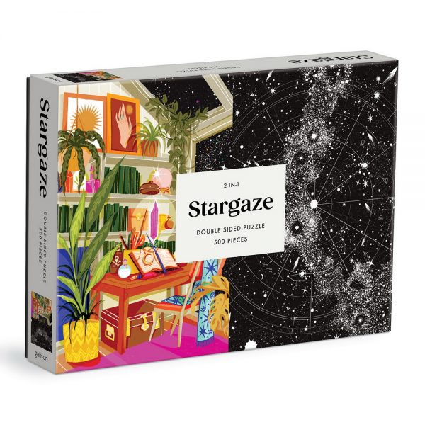 Το παζλ 500 κομματιών διπλής όψης, Stargaze, απεικονίζει στη μία πλευρά μία έντονη σε χρώματα σκηνή από το εσωτερικό ενός σπιτιού και στην άλλη πλευρά, τα θαύματα του σύμπαντος!