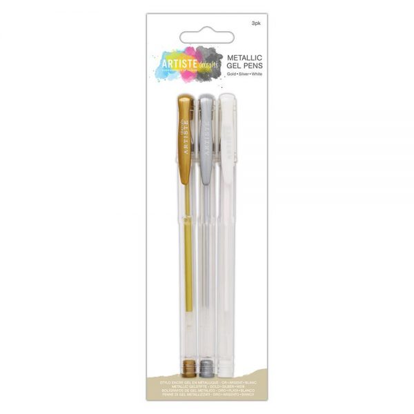 Σετ με μεταλλικά τζελ στυλό, σε χρυσό, ασημί και λευκό χρώμα, με ομαλή και ομοιόμορφη ροή μελανιού.