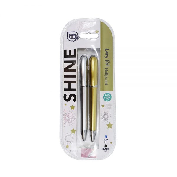 Σετ με δύο στυλό με ballpoint, ένα σε χρυσό και ένα σε ασημί χρώμα. Το μελάνι στο ένα είναι μπλε και στο άλλο μαύρο.