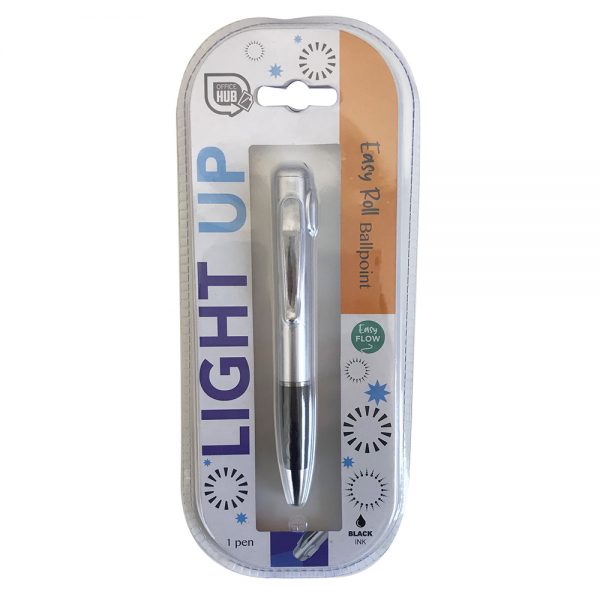 Στυλό ballpoint με φωτάκι. Προσφέρει μια ομαλή, άνετη εμπειρία γραφής σε κομψό σχεδιασμό. Ομαλή, σταθερή ροή μελανιού για αβίαστη γραφή. Πατώντας το ειδικό κουμπί στην κορυφή του στυλό, ανάβει ένα φωτάκι, κατάλληλο για ώρα ανάγκης ή για παιχνίδι!