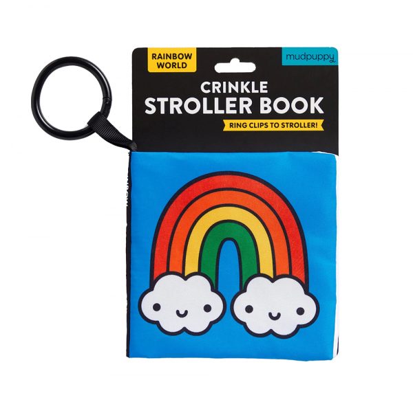 Διασκεδάστε το μωρό σας καθώς παίζει με τις πολύχρωμες και μαλακές σελίδες του Rainbow World Crinkle Fabric Stroller Book της Mudpuppy.