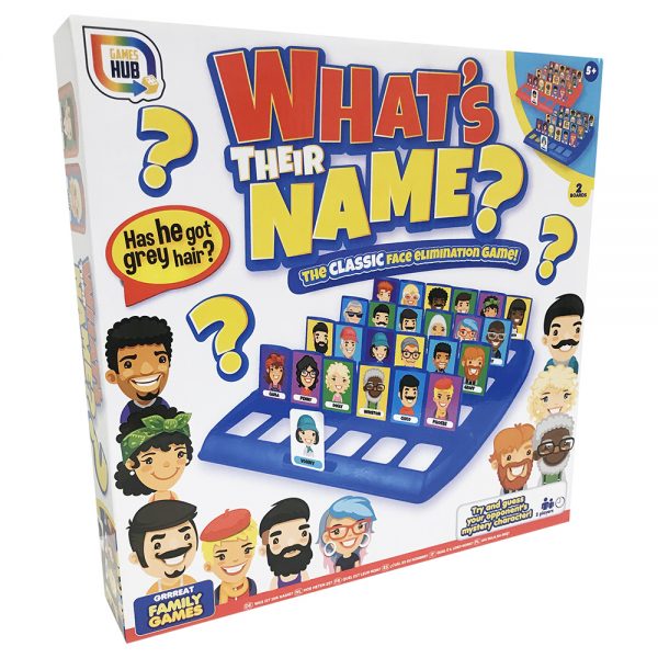 Το Επιτραπέζιο What’s Their Name? είναι ένα κλασικό παιχνίδι που έχει σχεδιαστεί για να δοκιμάσει τη μνήμη και τις ικανότητές σας να μαντέψετε! Στο παιχνίδι πρέπει να μαντέψετε ποιον χαρακτήρα έχει επιλέξει ο αντίπαλός σας, κάνοντας ερωτήσεις σχετικά με τα χαρακτηριστικά του, όπως “Έχει μπλε μάτια;” και αν η απάντηση είναι ναι, απλά κλείστε τις καρτέλες που έχουν χαρακτήρες χωρίς μπλε μάτια. Όταν έχετε απορρίψει αρκετούς χαρακτήρες και είστε σίγουροι ότι γνωρίζετε ποιον έχει επιλέξει ο αντίπαλός σας, δείτε εάν μπορείτε να είστε οι πρώτοι που θα μαντέψετε τον χαρακτήρα των αντιπάλων σας και κερδίστε το παιχνίδι!