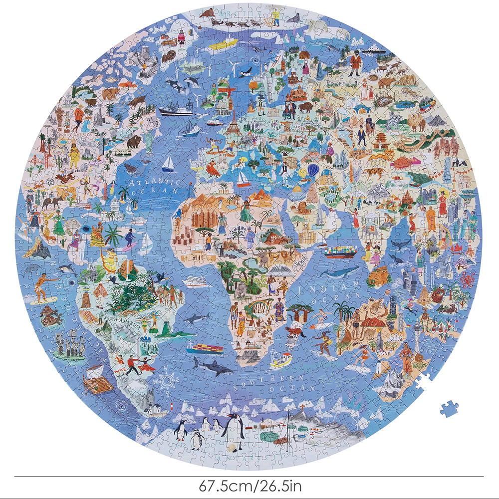 Ξεκινήστε μία περιπέτεια στον κόσμο, χωρίς να φύγετε από την άνεση του σπιτιού σας με το 1000pcs Παζλ Παγκόσμιος Χάρτης! Ιδανικό για τους λάτρεις της γεωγραφίας, της ιστορίας και των παζλ, αυτό το εντυπωσιακό, περίτεχνα σχεδιασμένο παζλ, ζωντανεύει τα θαύματα του κόσμου σε ένα μοναδικό στρογγυλό σχήμα.