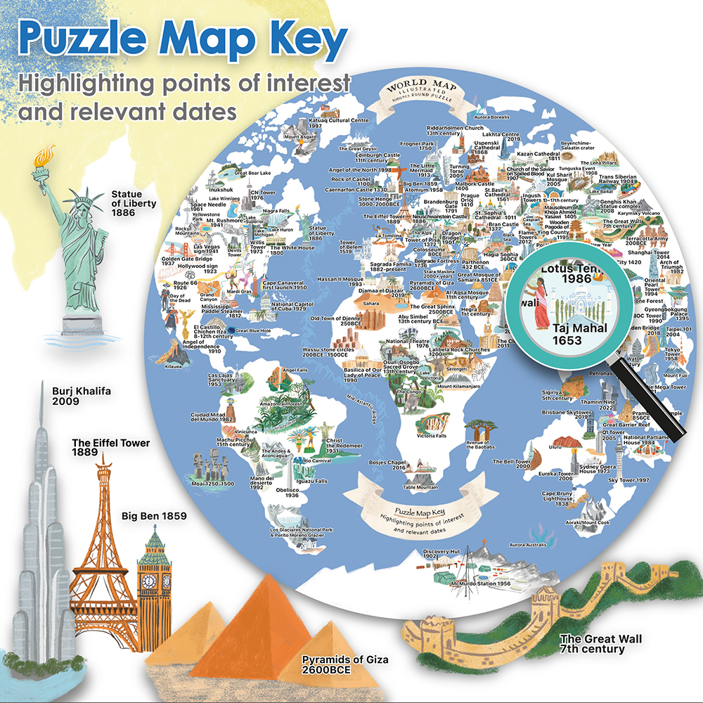 – Εκπαίδευση και διασκέδαση: εξερευνήστε τον κόσμο και ανακαλύψτε σημαντικές ιστορικές ημερομηνίες και μνημεία όσο συναρμολογείτε.