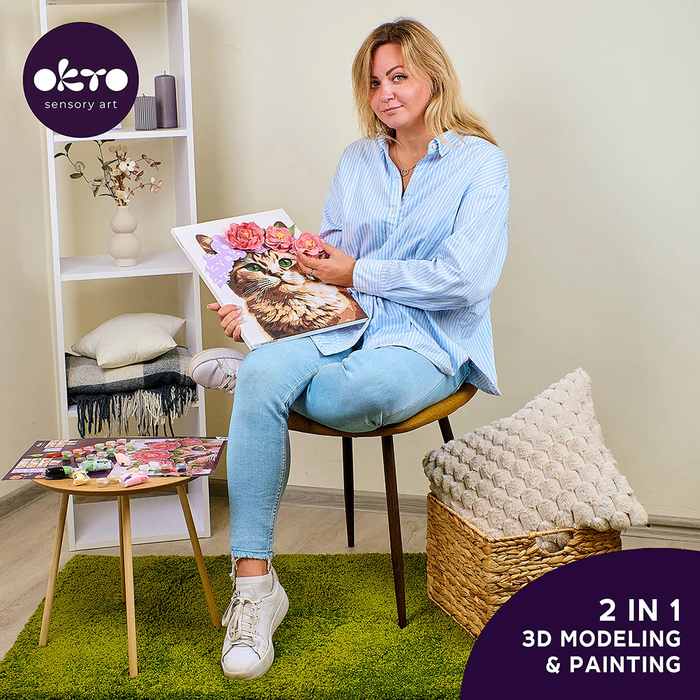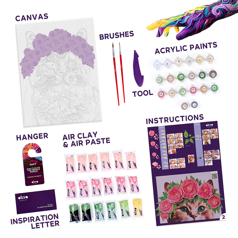 DIY Δημιουργικό Σετ Ζωγραφικής 3D με Πηλό 2 σε 1 Γάτα με Στεφάνι από Λουλούδια