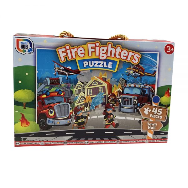 Έχει διασκεδαστικό σχέδιο με κύριους χαρακτήρες πυροσβέστες και περιλαμβάνει 45 κομμάτια!