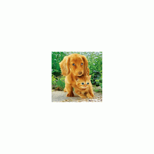 Η συγκεκριμένη Κάρτα 3D, έχει μέγεθος μεγάλου τετραγώνου ταχυδρομικής κάρτας (14,8 x 14,8) και απεικονίζει σε τρεις διαστάσεις μία γάτα και έναν σκύλο τζίντζερ!