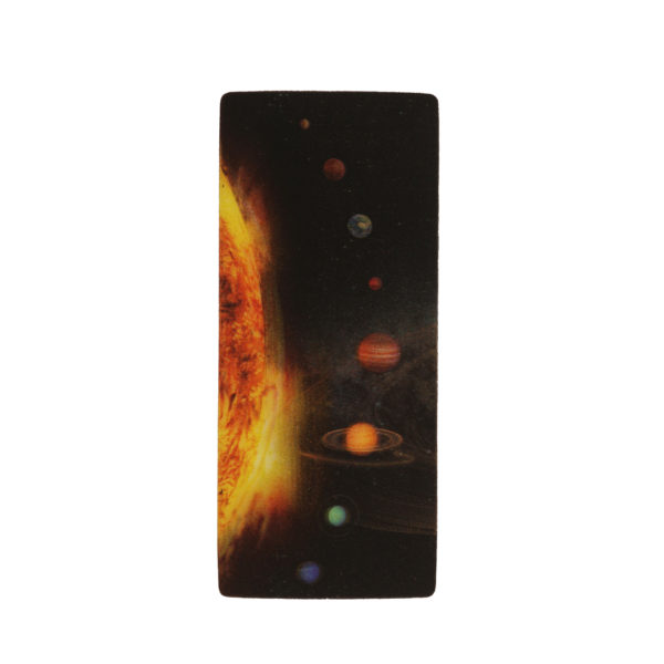 Η συγκεκριμένη Κάρτα 3D, έχει από πίσω μαγνητική επιφάνεια που ‘κολλάει’ σε οποιοδήποτε υλικό έλκει το μαγνήτη και απεικονίζει σε τρεις διαστάσεις το ηλιακό σύστημα!