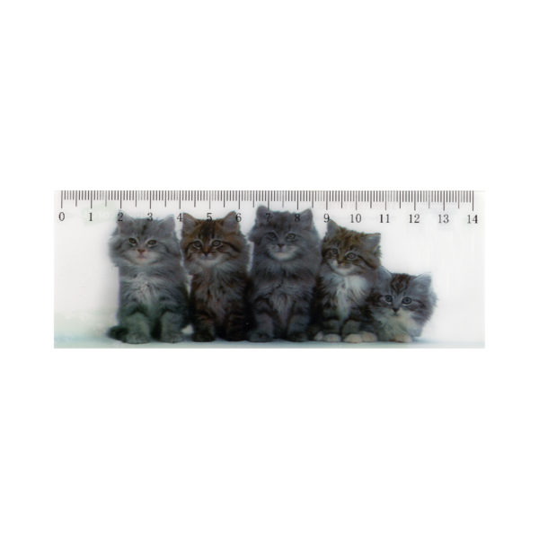 Η συγκεκριμένη Κάρτα 3D, χρησιμοποιείται ως χάρακας μιας και διαθέτει αρίθμηση σε εκατοστά (0 – 14) και απεικονίζει σε τρεις διαστάσεις πέντε γατάκια!
