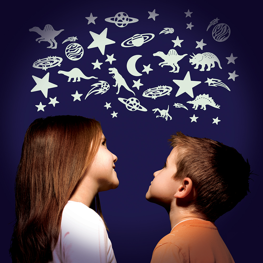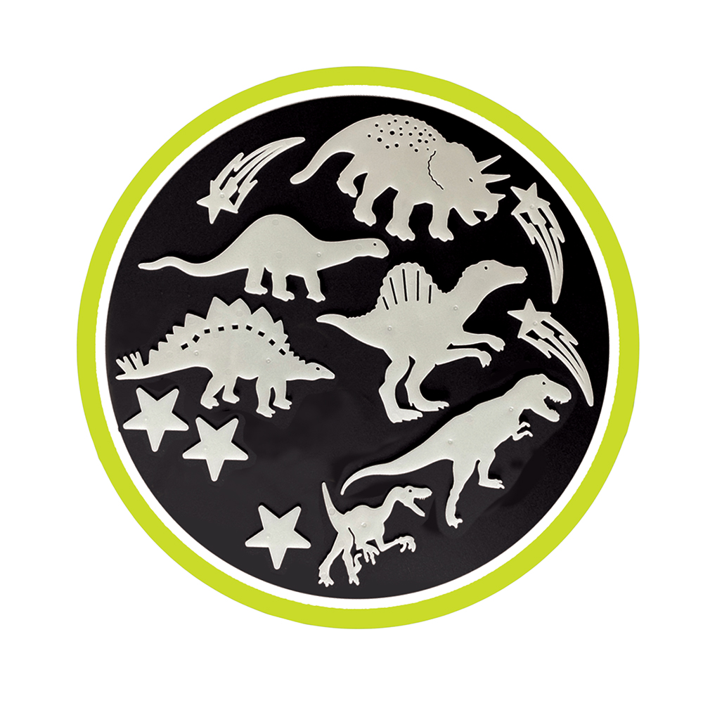 Δημιουργήστε στο δωμάτιό σας προϊστορικά σχέδια που φωσφορίζουν στο σκοτάδι, με αυτό το μοναδικό σετ που περιλαμβάνει 6 μεγάλους δεινοσαύρους, 3 αστέρια και 3 διάττοντες αστέρες!