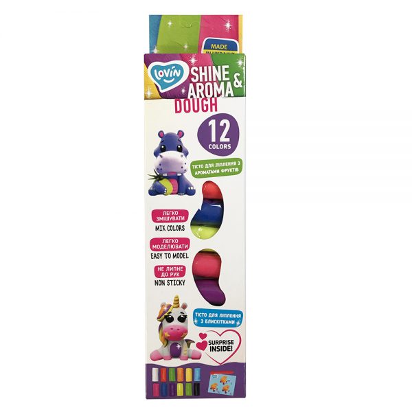 Το σετ Shine and Aroma, αποτελείται από 12 πλαστελίνες σε έντονα χρώματα, σε ένα σετ, για τους μικρούς καλλιτέχνες! Οι μισές πλαστελίνες είναι αρωματικές και οι υπόλοιπες έχουν εντυπωσιακό γκλίτερ μέσα για ακόμα περισσότερο και συναρπαστικό παιχνίδι! Δημιουργήστε, παίξτε, ονειρευτείτε με την Lovin!