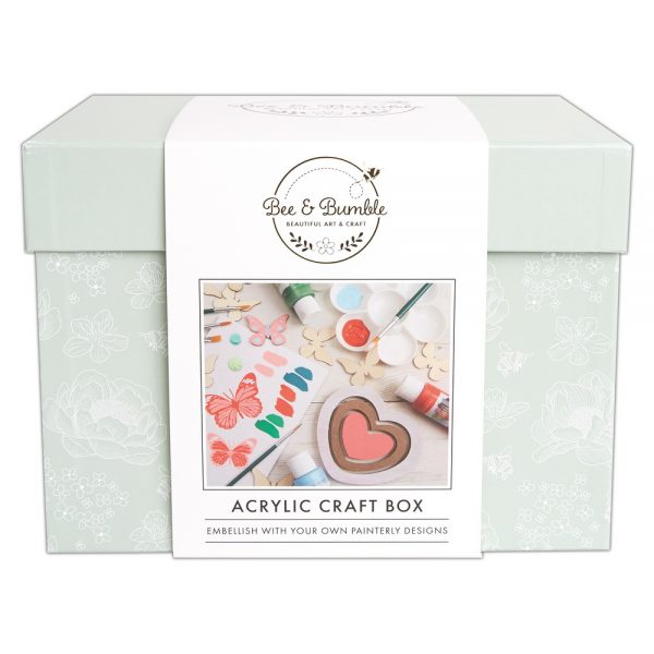 Διακοσμήστε με τα δικά σας ζωγραφικά σχέδια με αυτό το απίστευτο δημιουργικό σετ από την Bee and Bumble. Προσθέστε μια προσωπική πινελιά, διακοσμώντας τις ξύλινες πεταλούδες και τις καρδιές με τα ζωηρά χρώματα. Δοκιμάστε μερικούς συνδυασμούς χρωμάτων και σχέδια στο μπλοκ – το χαρτί είναι κατάλληλο για ακρυλικά χρώματα.