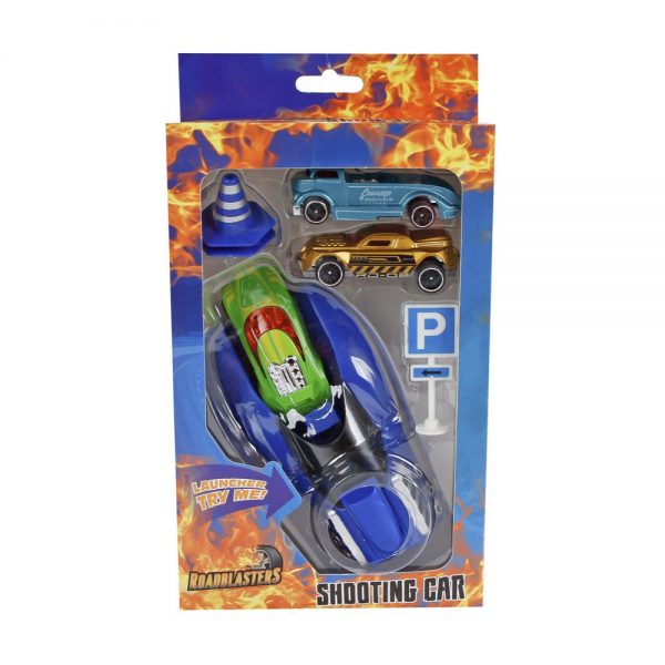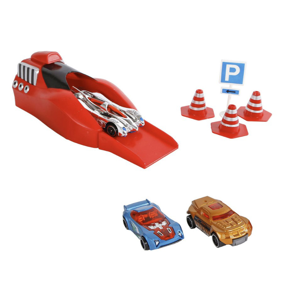 Σετ με εκτοξευτήρα, 3 αυτοκινητάκια και διάφορα αξεσουάρ.