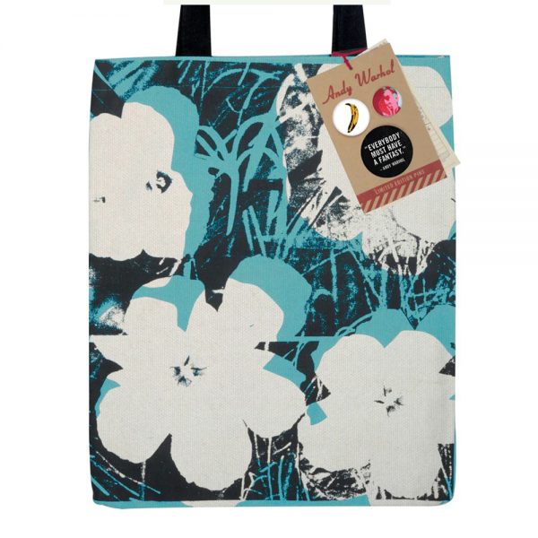 Η τσάντα Andy Warhol Foundation Poppies, διαθέτει την εμβληματική εικονογράφηση με λουλούδια παπαρούνες του Warhol στη μία πλευρά και το απόφθεγμα “Art is what you can get away with”, στην άλλη πλευρά.