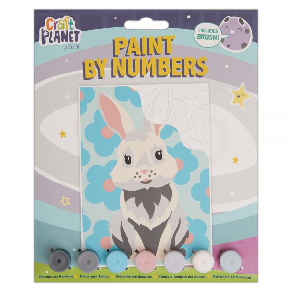 Ένα απλό μοτίβο με αριθμημένα κουτάκια είναι τυπωμένο στον καμβά. Τα περιγράμματα και οι αριθμοί είναι ευδιάκριτα, κάτι που θα βοηθήσει το παιδί να εφαρμόσει το σωστό χρώμα, στο σωστό πλαίσιο.
