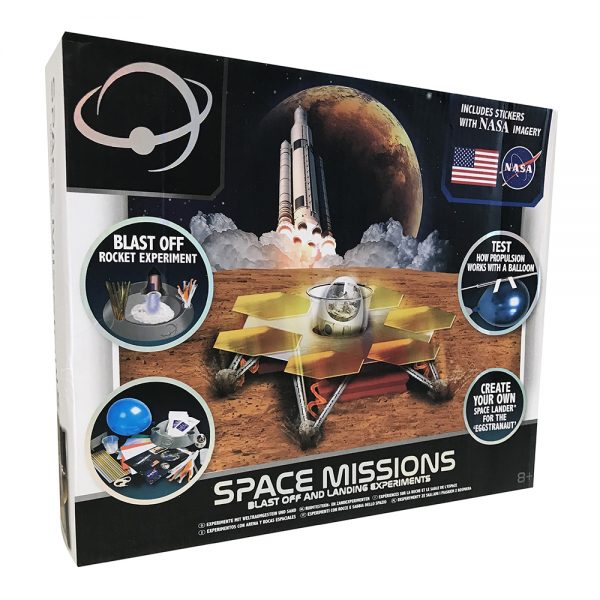 Πάρτε ένα αυγό και δείτε αν μπορείτε να το εκτινάξετε με τη διττανθρακική σόδα που περιλαμβάνεται ή δοκιμάστε την πρόωση με το μπαλόνι και, στη συνέχεια, δείτε εάν μπορείτε να δώσετε στον… «αυγοναύτη» μια ασφαλή προσγείωση! Το σετ περιλαμβάνει αυτοκόλλητα με εικόνες της NASA.