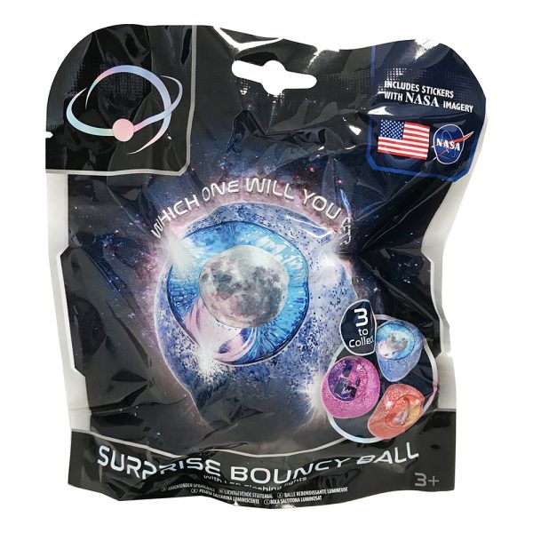 Ένα εντυπωσιακό Nasa Μπαλάκι Έκπληξη, που απεικονίζει έναν Διεθνή Διαστημικό Σταθμό, ένα διαστημικό λεωφορείο ή τη Σελήνη και φωτίζει κάθε φορά που αναπηδά!