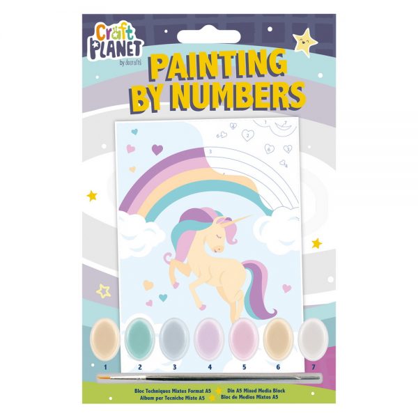 Περιεχόμενα: Α5 για ζωγραφική (210 x 148 x 1,5 mm), 7 μικρά δοχεία με ακρυλικά χρώματα και πινέλο.